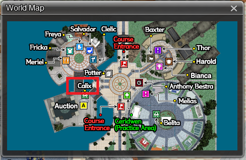 one free item per day (limit one per account) from NPC Calix! You can find NPC Calix in the World Map below: ![]() This is a special Daily Attendance Event and we will not release the item list! There will be different items for different days so you will have to log-in and find out what the daily attendance prizes are! ***Event Times*** Week 1 Start Time: 10/7/2013 12:00 A.M.(00:00 server time) End Time 10/11/13 11:59 P.M. (23:59 server time) Week 2 Start Time: 10/14/2013 12:00 A.M.(00:00 server time) End Time 10/18/13 11:59 P.M. (23:59 server time) Week 3 Start Time: 10/21/2013 12:00 A.M.(00:00 server time) End Time 10/25/13 11:59 P.M. (23:59 server time) Week 4 Start Time: 10/28/2013 12:00 A.M.(00:00 server time) End Time 10/31/13 11:59 P.M. (23:59 server time)